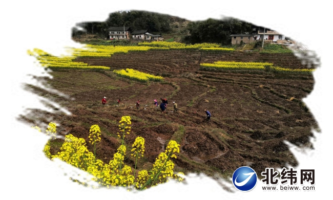 稍时,车驶进张家村地界,又爬上一个山坡后,于通组公路边停下,可清晰看见稍远处翻出新泥的农田、培育种苗的地膜,以及片片金黄色的油菜花。
