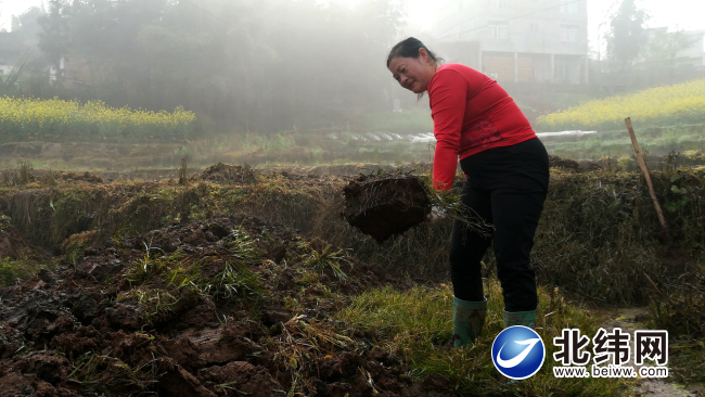 在忙碌的村民中,就有脱贫户高永慧。她脚蹬雨靴、挥动铁耙,不断勾起混合着草根的稀泥。“在这里务工已十余天,每天工钱80元。”高永慧说,加上此前在村里其他地方务工,最近1个多月,她的务工收入已有2400元。