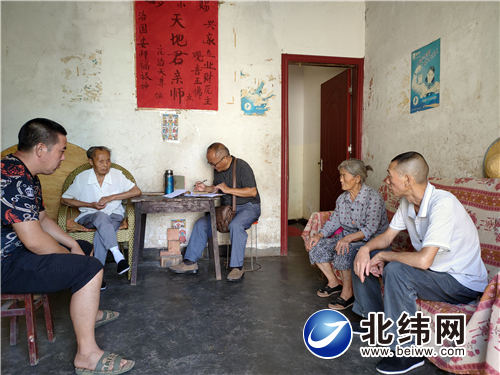 李和协助单位其他同志到玉溪村核实贫困户家庭信息