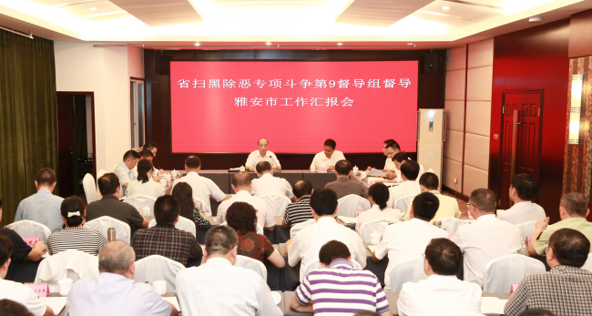 雅安日报/北纬网讯 为深入贯彻落实习近平总书记关于扫黑除恶专项斗争的重要指示和中央、省委、省政府决策部署精神,9月6日,四川省扫黑除恶专项斗争第9督导组进驻雅安市开展扫黑除恶专项斗争督导工作。当日下午,召开督导雅安市工作汇报会。督导组组长吴福军出席会议并讲话,市委书记兰开驰汇报雅安市扫黑除恶专项斗争工作并作表态发言。