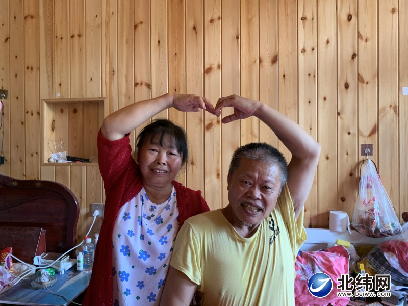 范明华、何秀英表达夫妻恩爱,摆出爱心造型