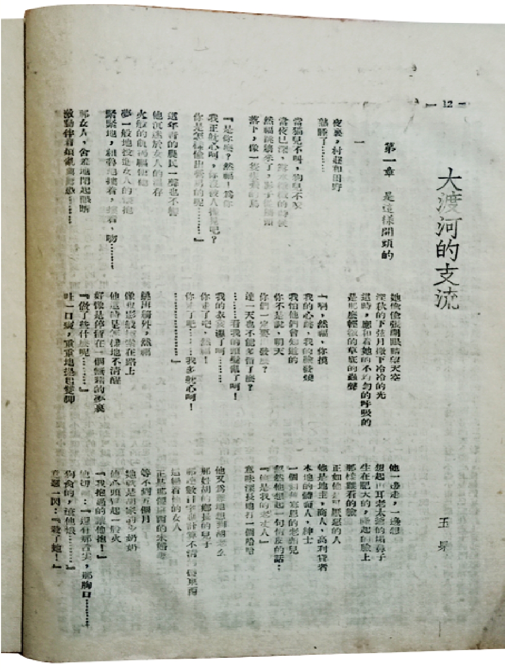 1945年6月,在重庆出版的《文艺杂志》第一卷第二期,刊发了一部长篇叙事诗《大渡河的支流》。长诗通过叙述女主人公琼枝的悲惨遭遇,控诉了那个时代广泛存在于中国社会的不合理婚姻制度。